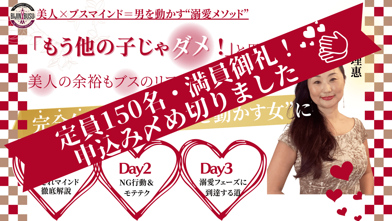 この講座では“美人マインド×ブスマインド”の極意をギュッと凝縮。